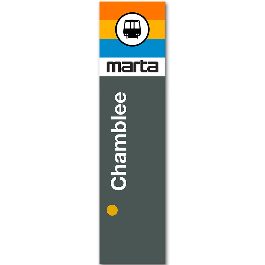 Signs are custom made and hand crafted to the exacting specifications of MARTA's style guide. Mini metal signs measure almost 2 1/2 Feet tall (29" tall x 6" wide x 1" deep).
