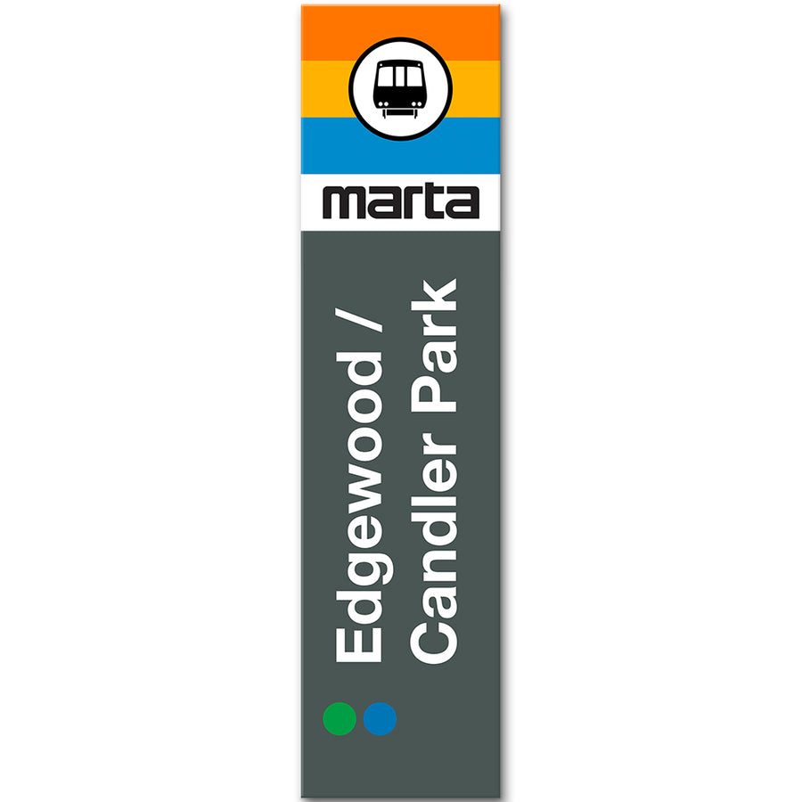Signs are custom made and hand crafted to the exacting specifications of MARTA's style guide. Mini metal signs measure almost 2 1/2 Feet tall (29" tall x 6" wide x 1" deep).