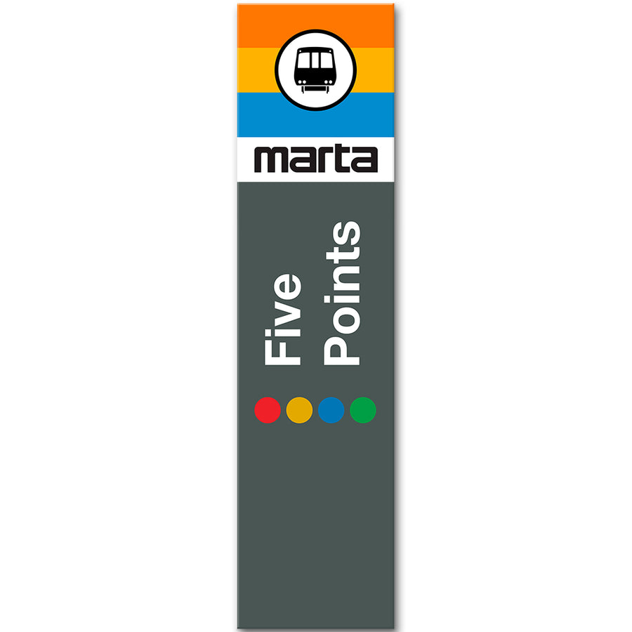 Signs are custom made and hand crafted to the exacting specifications of MARTA's style guide. Mini metal signs measure almost 2 1/2 Feet tall (29" tall x 6" wide x 1" deep).