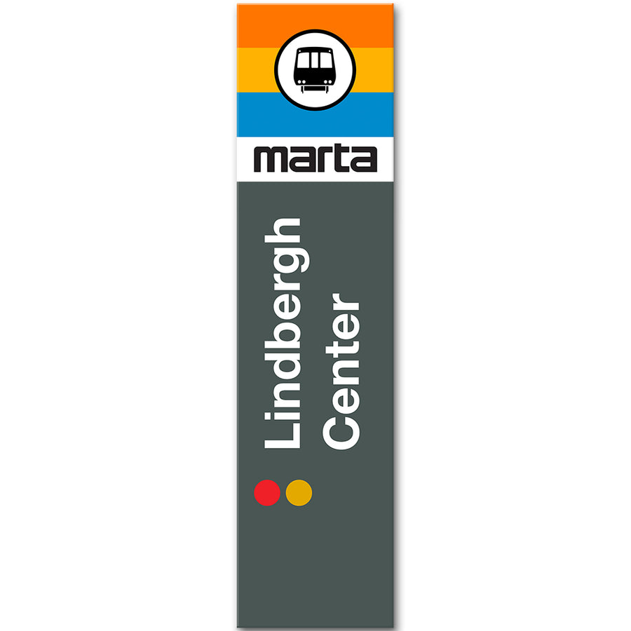 Signs are custom made and hand crafted to the exacting specifications of MARTA's style guide. Mini metal signs measure almost 2 1/2 Feet tall (29" tall x 6" wide x 1" deep).